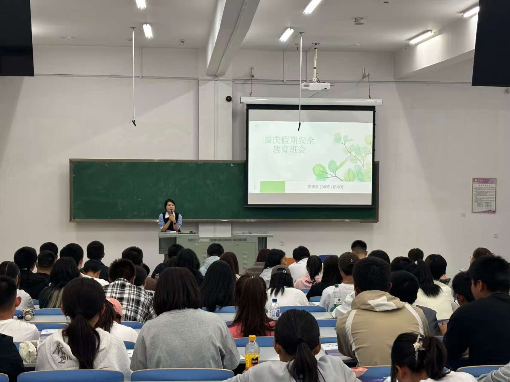 根据《延边大学关于做好2025年中秋、国庆假期校园安全工作的通知》要求,为切实做好国庆、中秋“双节”假期学生安全教育管理工作,理学院开展安全教育主题班会。