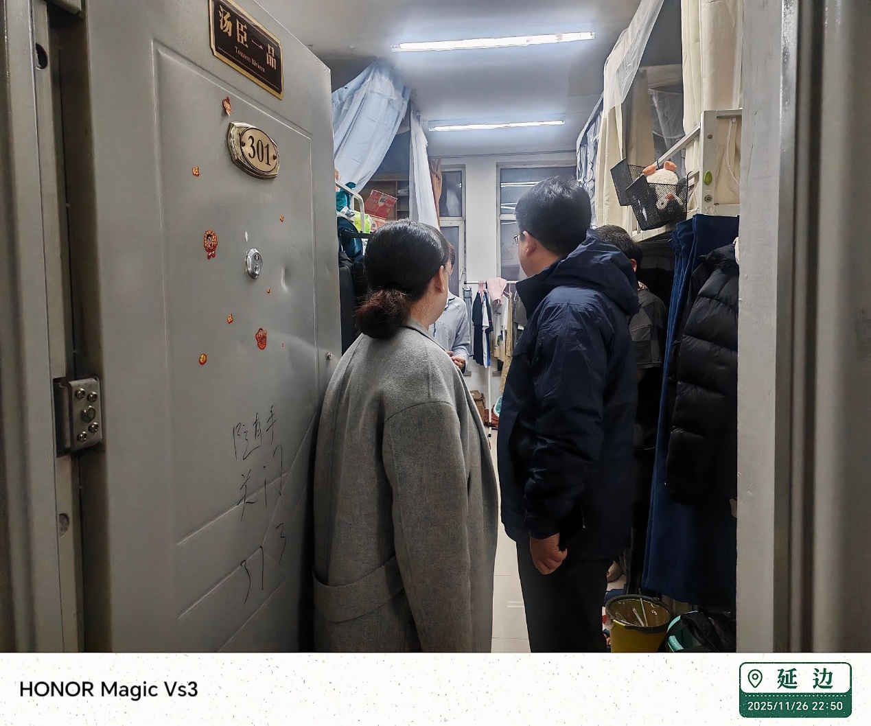 为进一步加强学生宿舍管理,规范学生作息行为,排查安全隐患,营造一个安全、和谐、有序的校园生活环境,11月26日晚,我院党委书记金银松、副书记韩美兰、学工办主任全香花开展了晚归、未归情况专项检查行动。