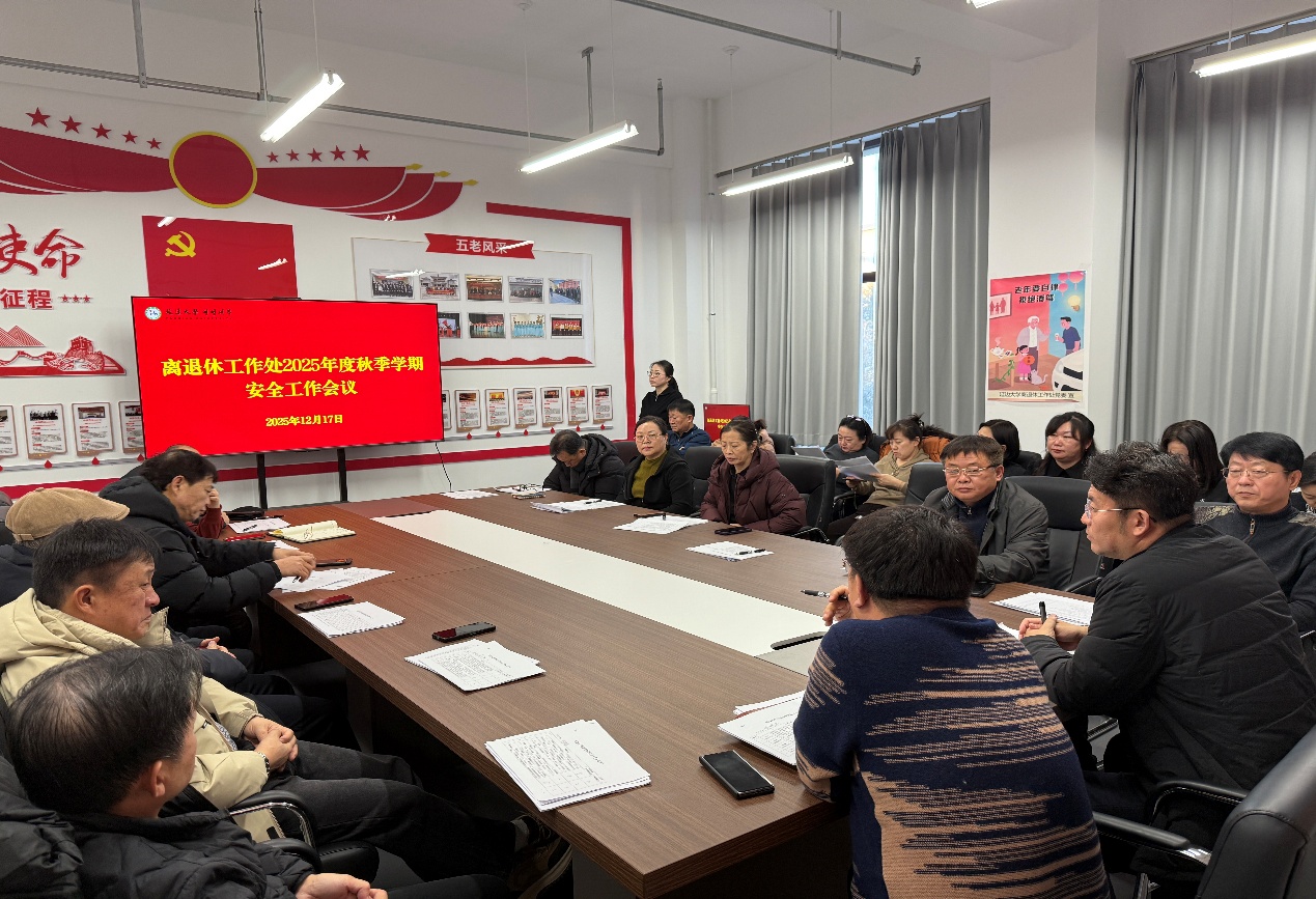 12 月 17 日下午,离退休工作处召开 2025 年度秋季学期安全工作会议。离退休工作处处长刘浩根主持会议并提出工作要求,处领导班子成员、各科室负责人及相关工作人员参加会议。