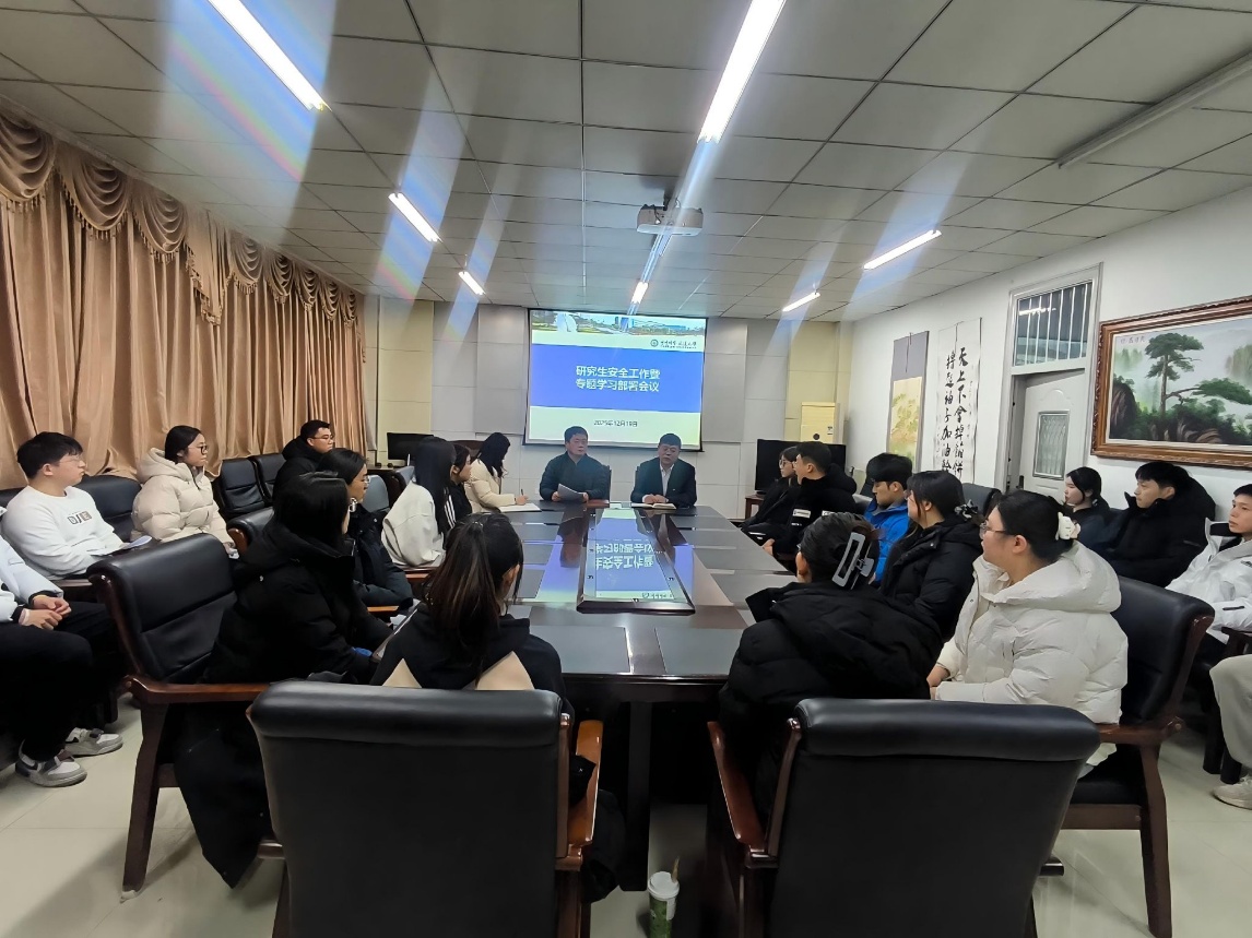 会议进一步明确了研究生安全工作的重点与要求,强化了学生干部的安全责任意识与担当精神,要求全体研究生干部起到示范带头作用,并利用实验室组会传达会议要求,为建设平安校园、助力学院高质量发展贡献力量。