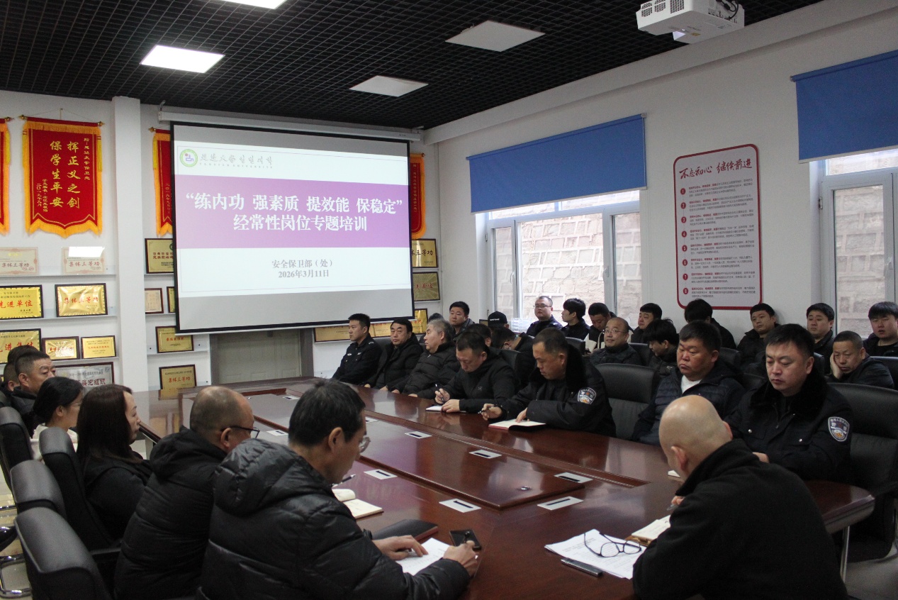 为深入贯彻落实省教育厅关于《吉林省学校安全保卫部门经常性岗位培训》的文件精神,切实筑牢平安校园建设防线。3月11日上午,安全保卫部(处)开展“练内功 强素质 提效能 保稳定”经常性岗位专题培训暨第一季度党课学习,会议由副处长于宏君主持,安全保卫部(处)全处人员参加会议。